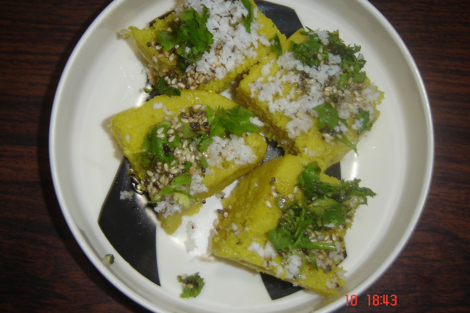 He is willing to eat it night and day. When we were newly married I remember making 3-4 tins of dhokla and dumping it in the fridge. He used to come home from work before me and he would eat it with or without the accompanying toppings.